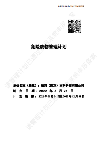 固体废物污染环境防治信息公开_恒河(南京)材料科技有限公司