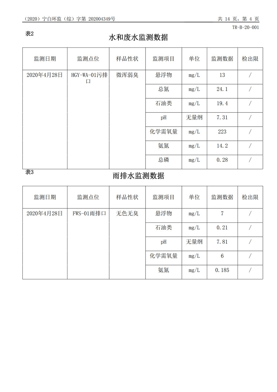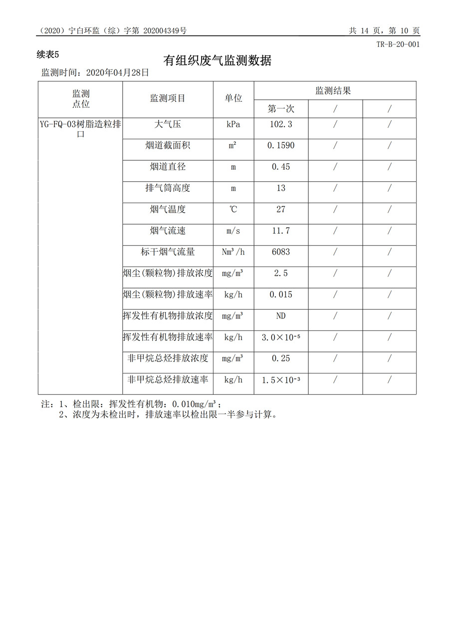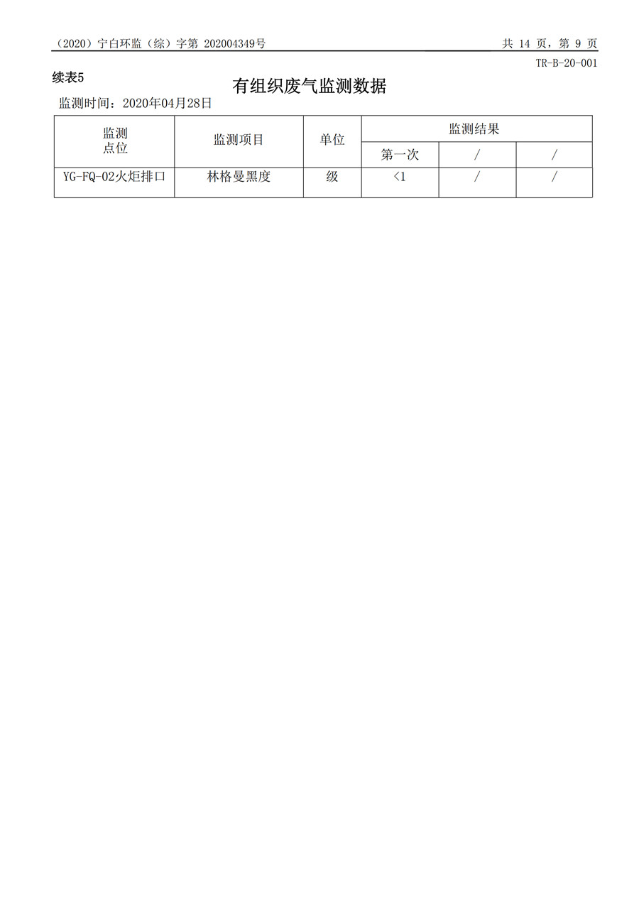 南京源港精细化工有限公司2020年第二季度自行监测数据