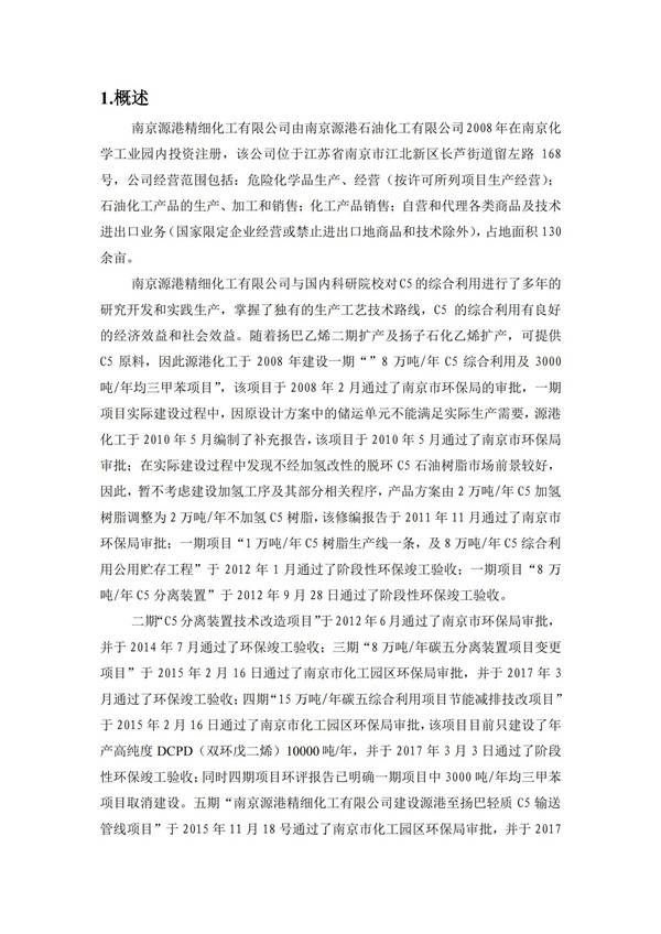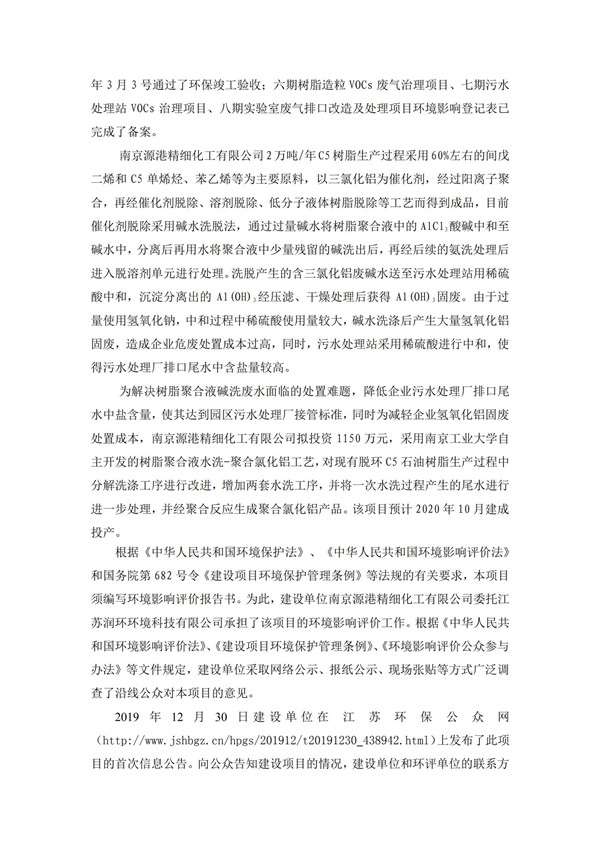南京源港精细化工有限公司环境影响评价报告 全本公示