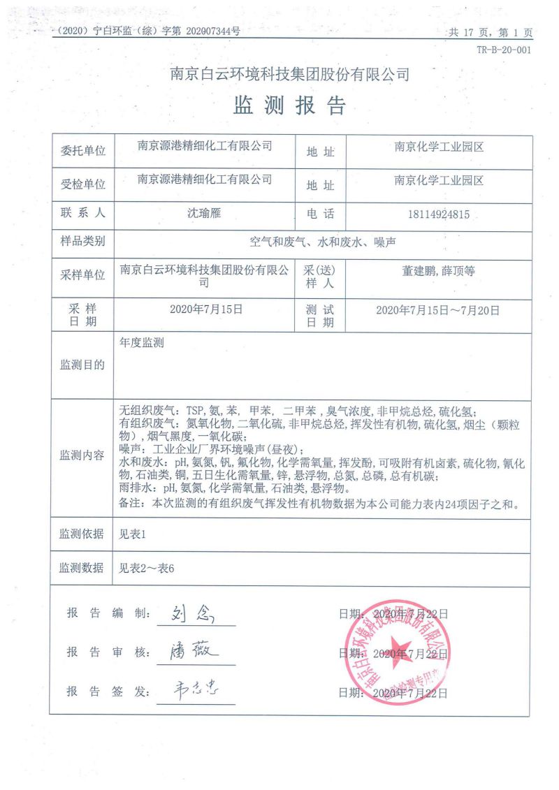 南京源港精细化工有限公司环境影响评价报告 公参说明