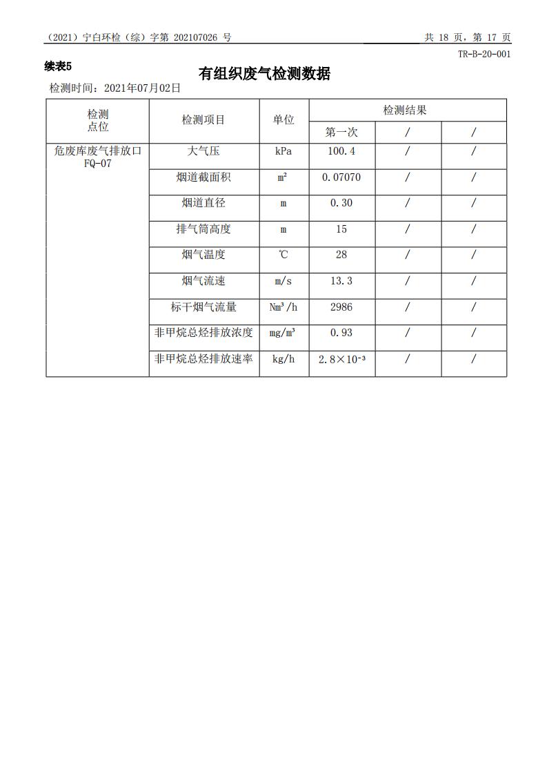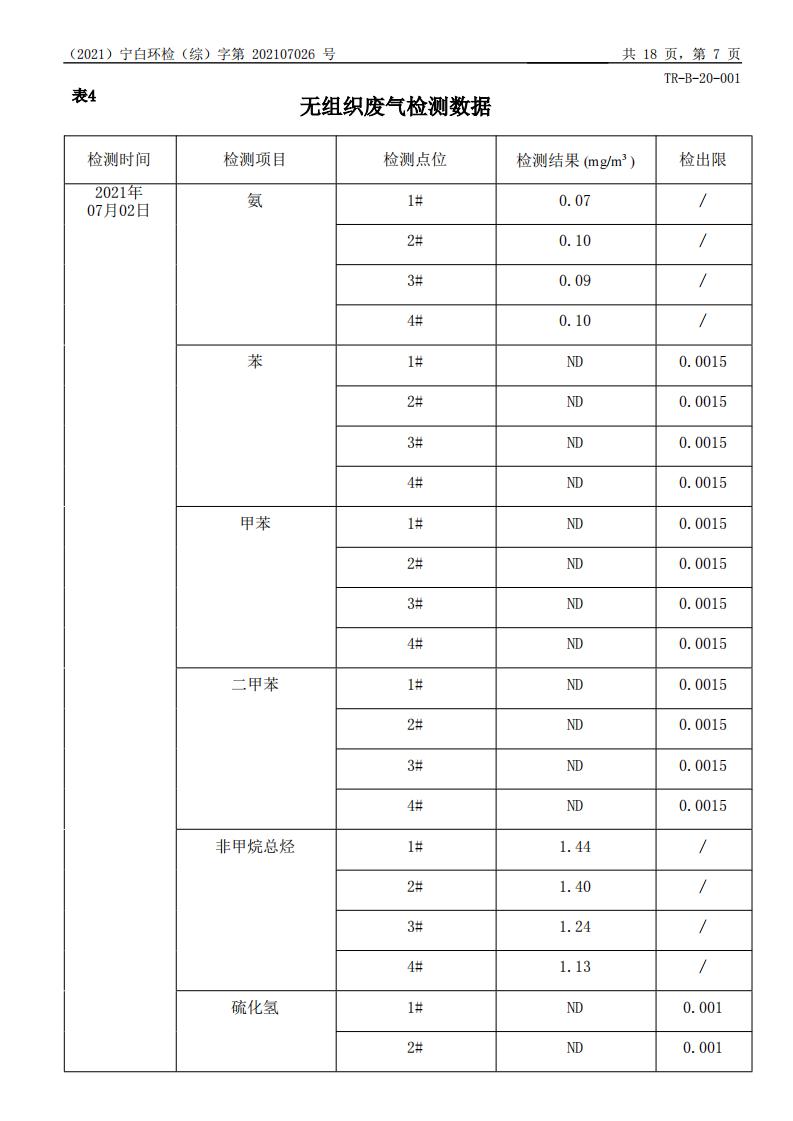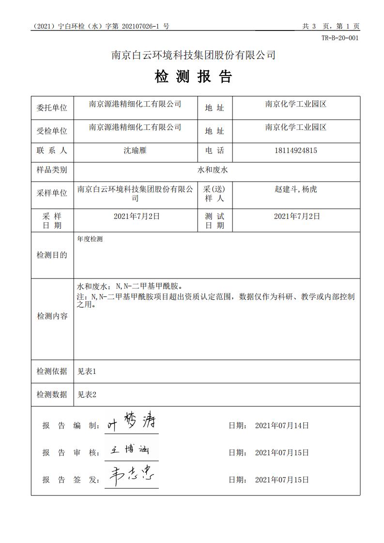 恒河(南京)材料科技有限公司2021年7月监测报告