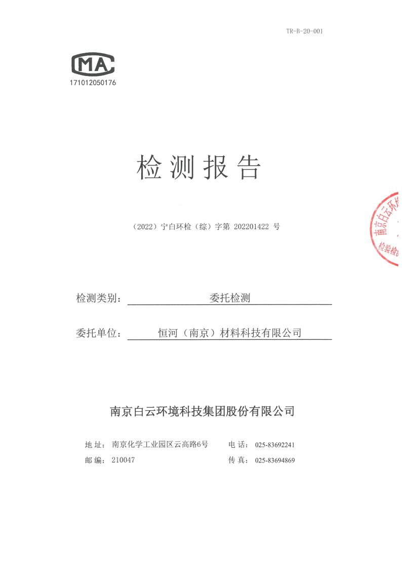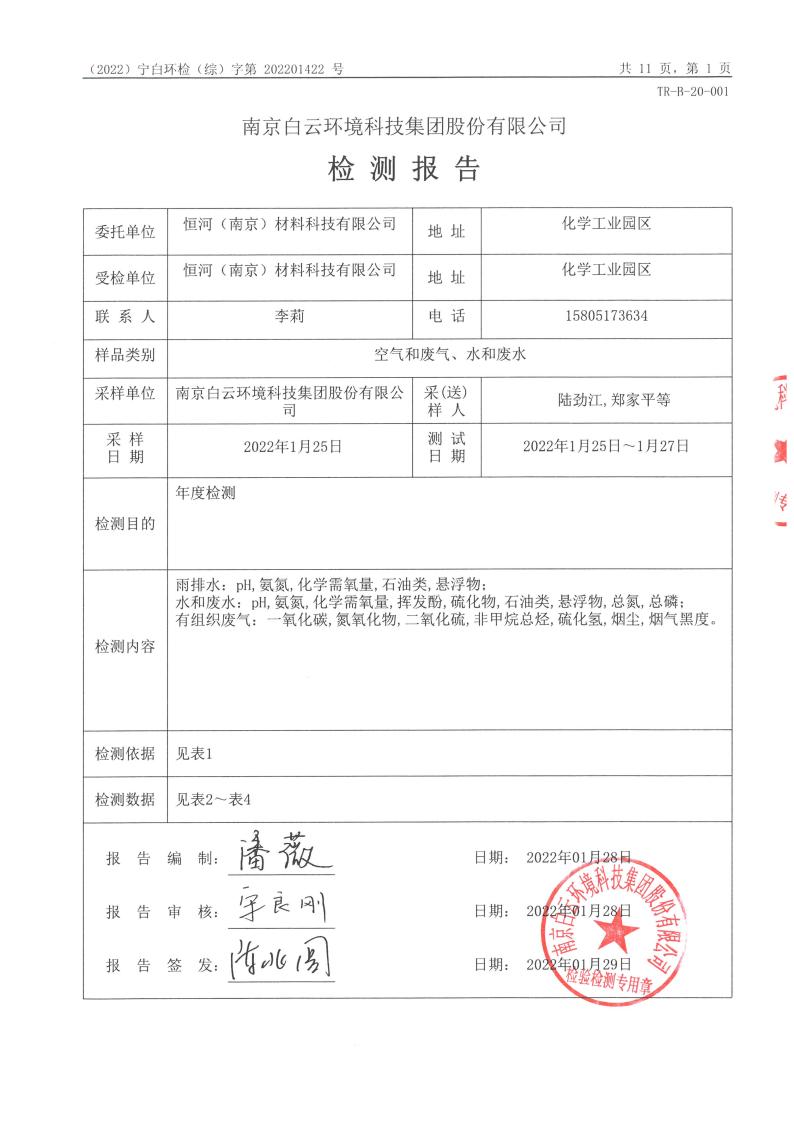 恒河(南京)材料科技有限公司2022年1月自行监测报告公示