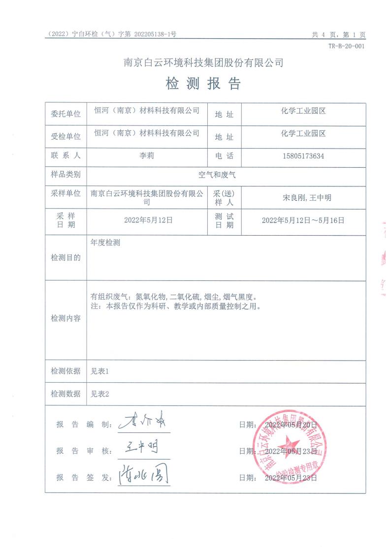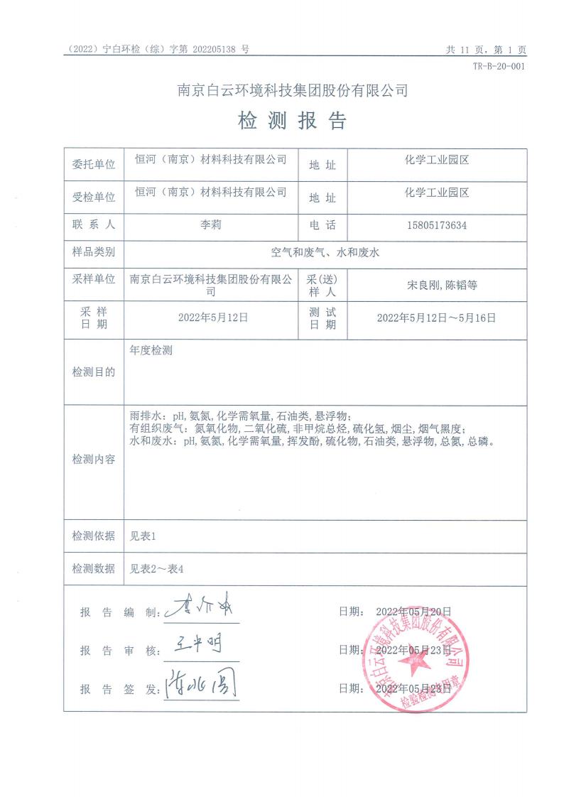 恒河(南京)材料科技有限公司2022年05月监测报告_恒河(南京)材料科技有限公司