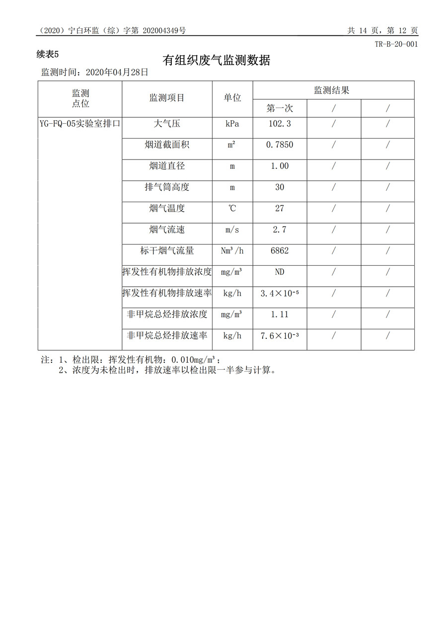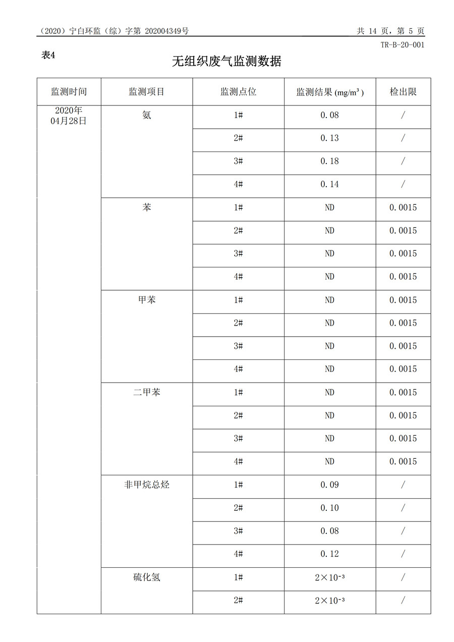 南京源港精细化工有限公司2020年第二季度自行监测数据