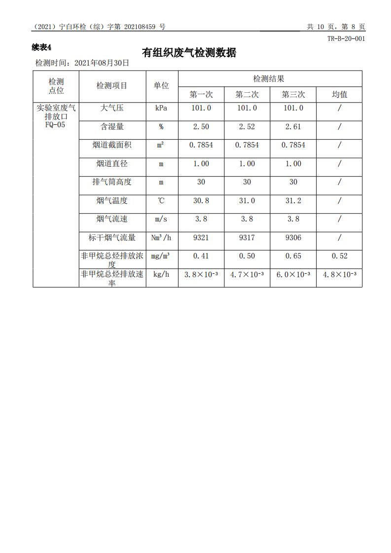 恒河(南京)材料科技有限公司2021年8月监测报告_恒河(南京)材料科技有限公司