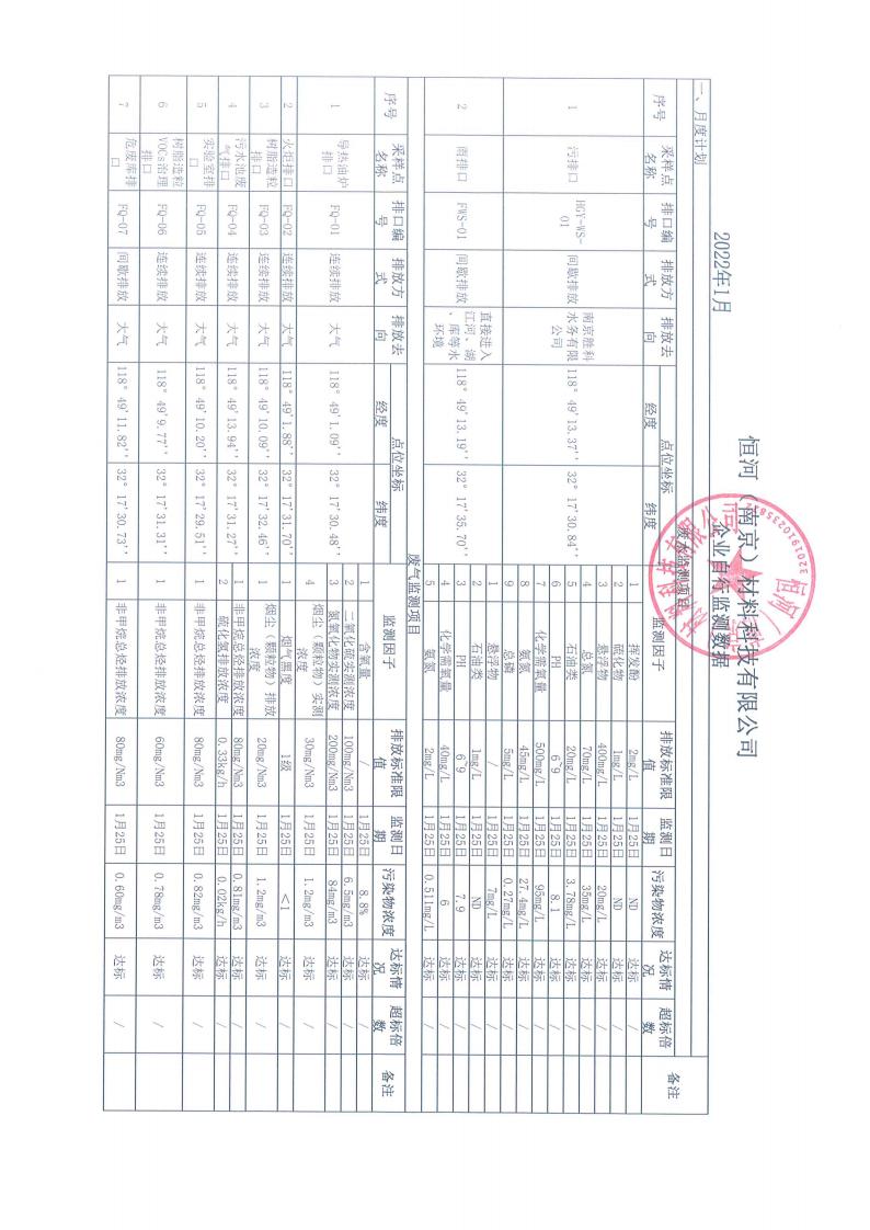 恒河(南京)材料科技有限公司2022年1月自行监测报告公示_恒河(南京)材料科技有限公司